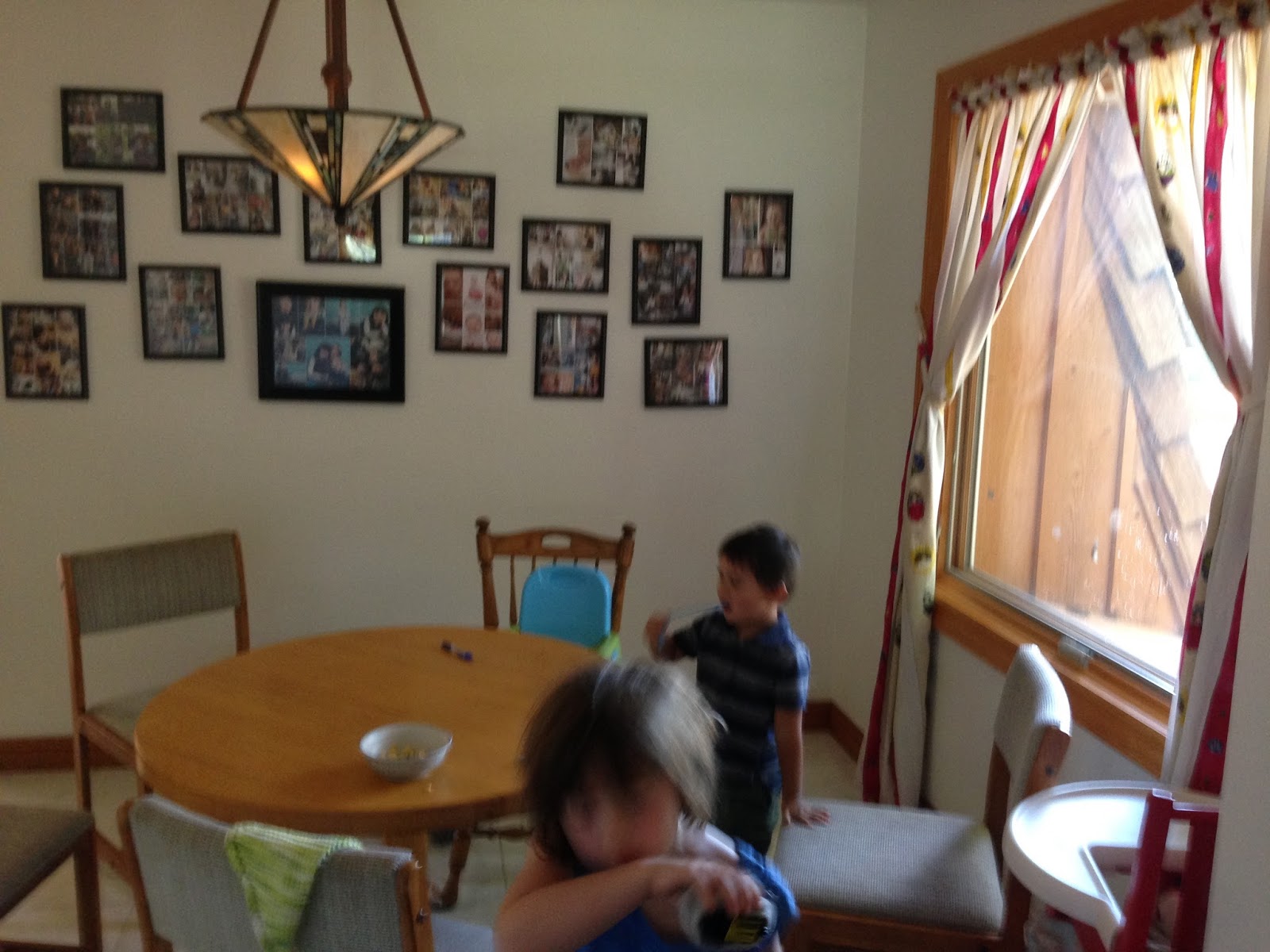 If you turn to the right upon entering the front door, you will encounter our breakfast nook. On the wall behind it are collages of all our professional photography sessions. They are the first things I put on the walls of our new house and I LOVE the story they tell. Every birth ceremony, every large family get-together. I don't have to fill all of our experiences making my kids pose for pictures because I know that periodically, a professional will do a much better job than I do. Worth every penny.